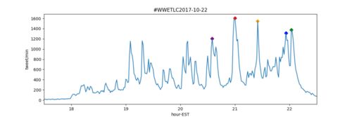 つい先日行われたWWEのPPV、Table,Ladder and Chair中の#WWETLCハッシュタグに投稿されたツイート推移を知れべて見ました。 集計結果 横軸が現地時刻(EST)、縦軸がツイート数/分になっています。また、大会は19:00開始、22時過ぎに終了しました。 この日のツ…