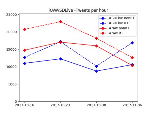 これまで主に新日本では新日本プロレスワールドで中継がある大会、そしてWWEではPPVを中心にツイート解析をしてきましたが、WWEの場合はPPV、そしてWWE Networkで配信されている大会以外にもTV番組としてRAWそしてSmackdownLIVEという二つの番組が所謂2本柱…