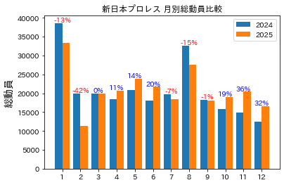 備考:新日本プロレスの月別動員比較